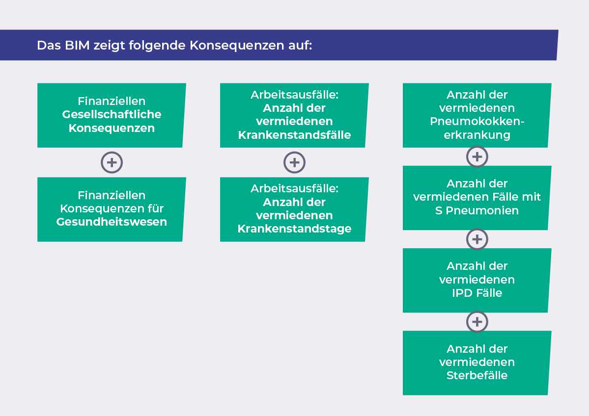 Allein mit der gegenwärtigen Durchimpfungsrate von ca. 20 Prozent bei über 60-Jährigen lassen sich über einen Zeitraum von fünf Jahren 21,3 Millionen Euro an direkten und indirekten Kosten einsparen. Konkret bedeutet das: Ein privat investierter Euro in die Pneumokokken-Impfung entlastet die Gesellschaft mit 1,92 Euro und das Gesundheitswesen mit 1,66 Euro. Könnte man die Durchimpfungsrate auf 30 Prozent steigern, bringt 1 investierter Euro bereits 3,11 Euro für die Gesellschaft und 2,70 Euro im Gesundheitswesen.